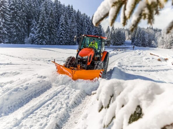 Ciągnik Kubota M5 może pracować przez cały rok, także przy odśnieżaniu dróg. Fot. Kubota