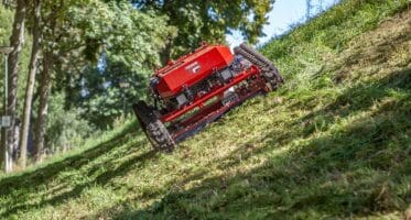 FERRIS FRC7 została zaprojektowana z myślą o najwyższym poziomie bezpieczeństwa. Nisko położony środek ciężkości, gąsienicowy układ jezdny oraz szeroki rozstaw zapewniają stabilność na pochyłościach do 55°. Oprócz czujnika przechyłu, urządzenie wyposażono również w system automatycznego zatrzymania w przypadku utraty sygnału z pilotem. Kosiarka może pracować do 4 godzin na jednym zbiorniku paliwa, a jej moc pozwala na szybkie koszenie dużych powierzchni porośniętych zaroślami lub wysoką trawą. Tym bardziej że szerokość robocza kosiska to aż 115 cm, a cztery noże mogą kosić w obu kierunkach.
