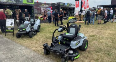 Marka Cramer pokazała dwie kosiarki zero turn – jedną z siedziskiem, drugą do sterowania stojąc na platformie. Oferują ekosystem zasilany wymiennymi akumulatorami 82V.
