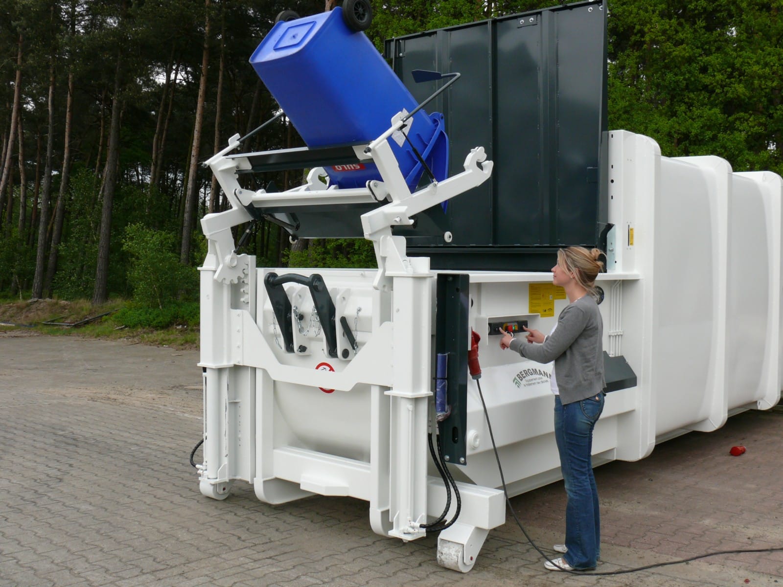 Prasokontenery Bergmann-Polska. Tego typu maszyny do recyklingu sprawdzają się tam, gdzie nie można użyć otwartego kontenera. Dotyczy to m.in. miejsc, w których ważne są względy higieniczne lub ochrona przed warunkami atmosferycznymi.