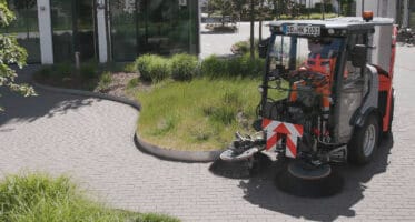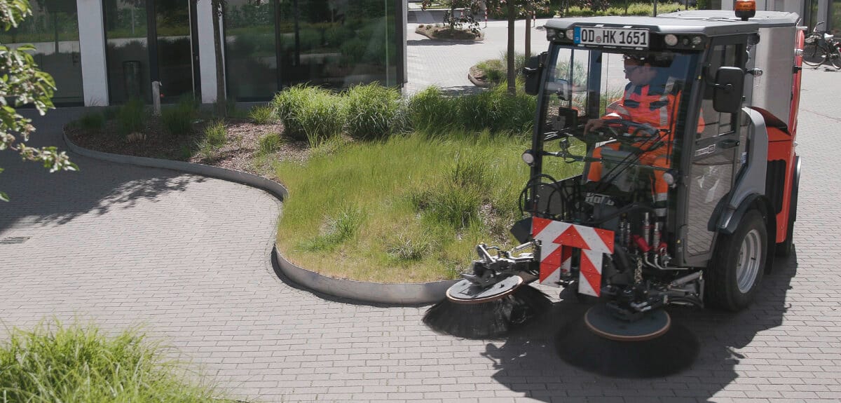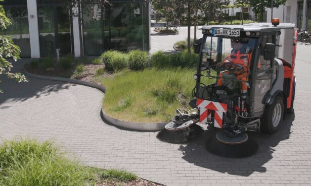 „Najlepszym rozwiązaniem do wykonywania prac w gęstej zabudowie są zamiatarki przegubowe wyposażone w ręczny wąż ssący oraz myjkę wysokociśnieniową. Konstrukcja przegubowa pozwala na dotarcie do miejsc trudnodostępnych oraz skuteczną i precyzyjną pracę z zachowaniem wszelkich certyfikatów ograniczenia zapylenia. Myjka pozwala na dokładne czyszczenie elementów infrastruktury (np. ławek, klombów), natomiast ręczny wąż ssący pozwala na zbieranie nieczystości z dużego obszaru bez konieczności prac ręcznych. Czyli operator maszyny komunalnej mając do dyspozycji wspomniany osprzęt może wykonać pracę o wiele szybciej i zastępując kilka osób, które musiałyby te same zadania wykonać ręcznie. Zgodnie z informacjami od naszych użytkowników, zamiatarka jest w stanie zastąpić w zależności od wykonywanych prac od pięciu do ośmiu pracowników”.