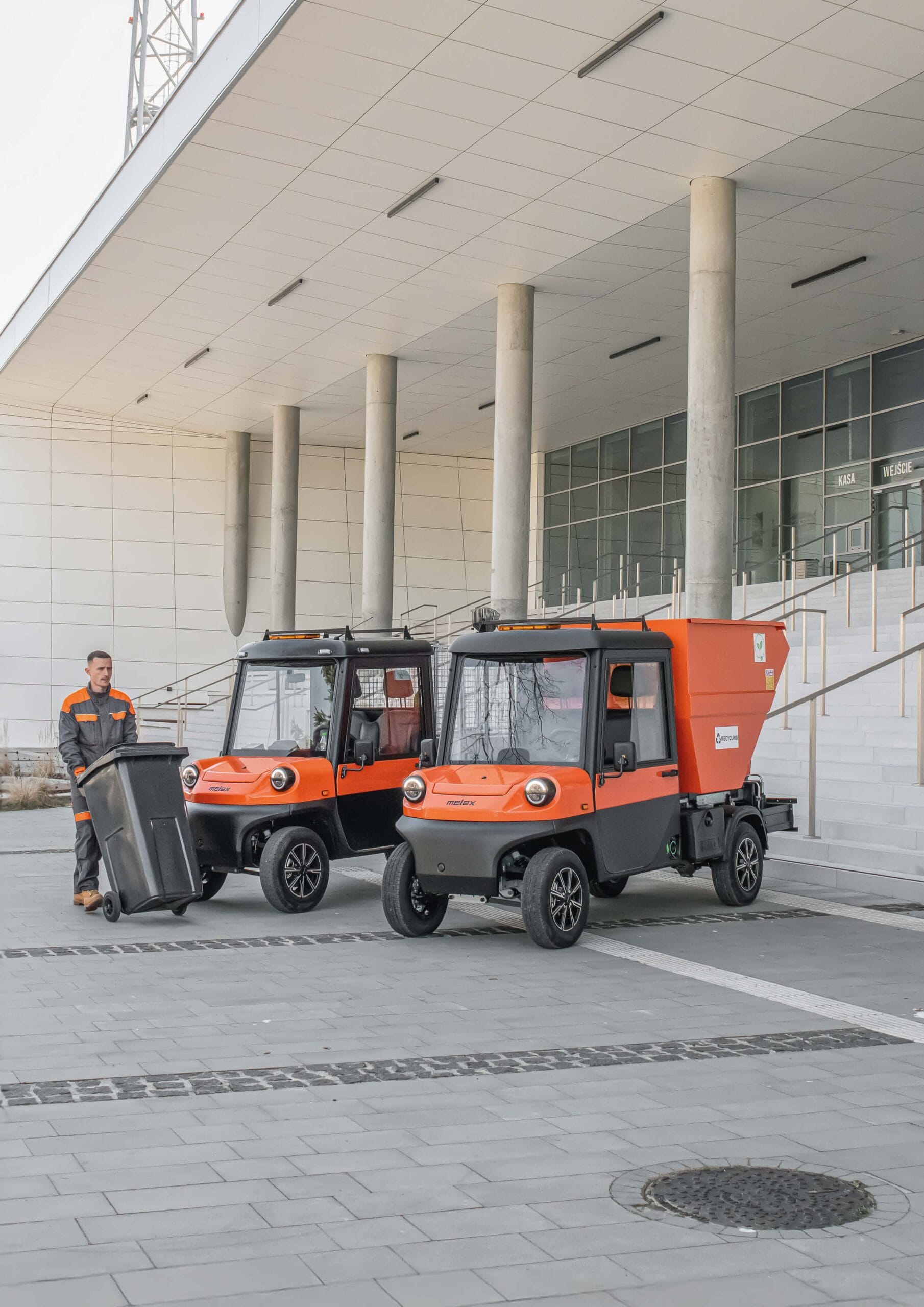 Śmieciarka elektryczna Melex to ekologiczne i zwrotne rozwiązanie dla firm komunalnych, idealne do pracy w ciasnych uliczkach i zaułkach.