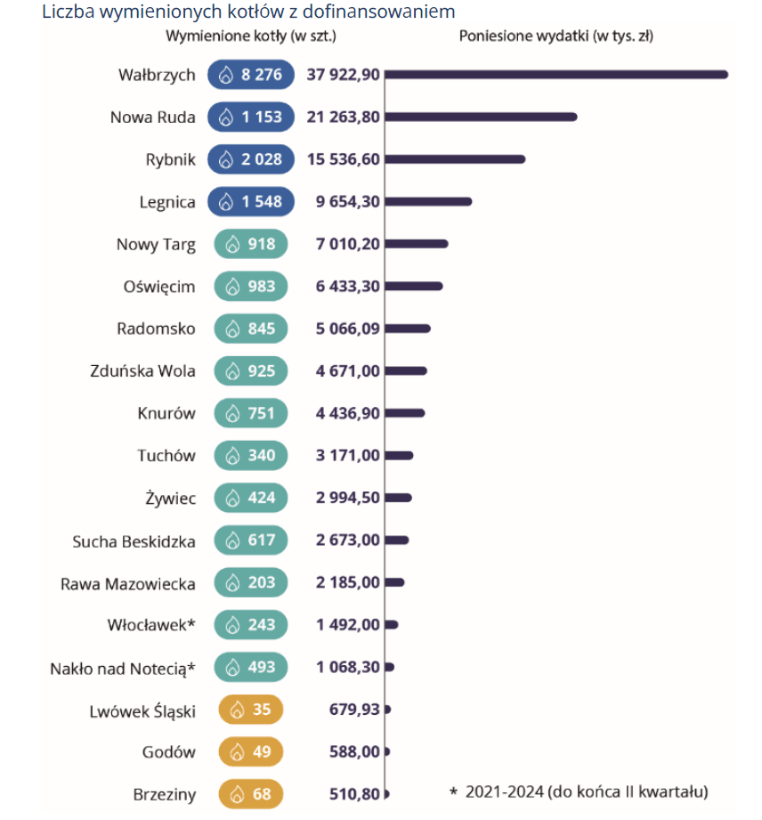 - Wałbrzych (8276 sztuk – przy zdecydowanie największych nakładach finansowych rzędu blisko 38 mln zł),